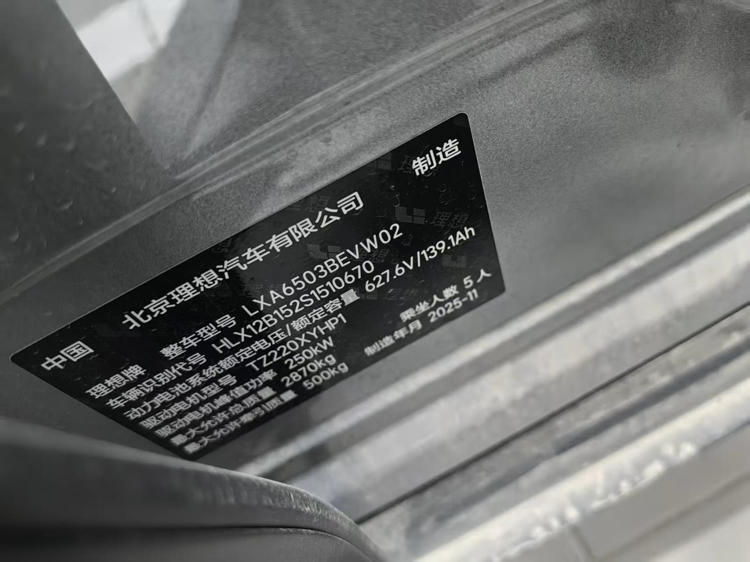 初次登记日期 2025-11-12 车辆名称 理想汽车
