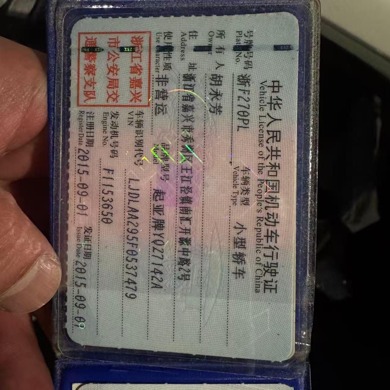 车辆归属地 浙江省嘉兴市 车辆停放仓库 浙江省嘉兴市嘉兴市