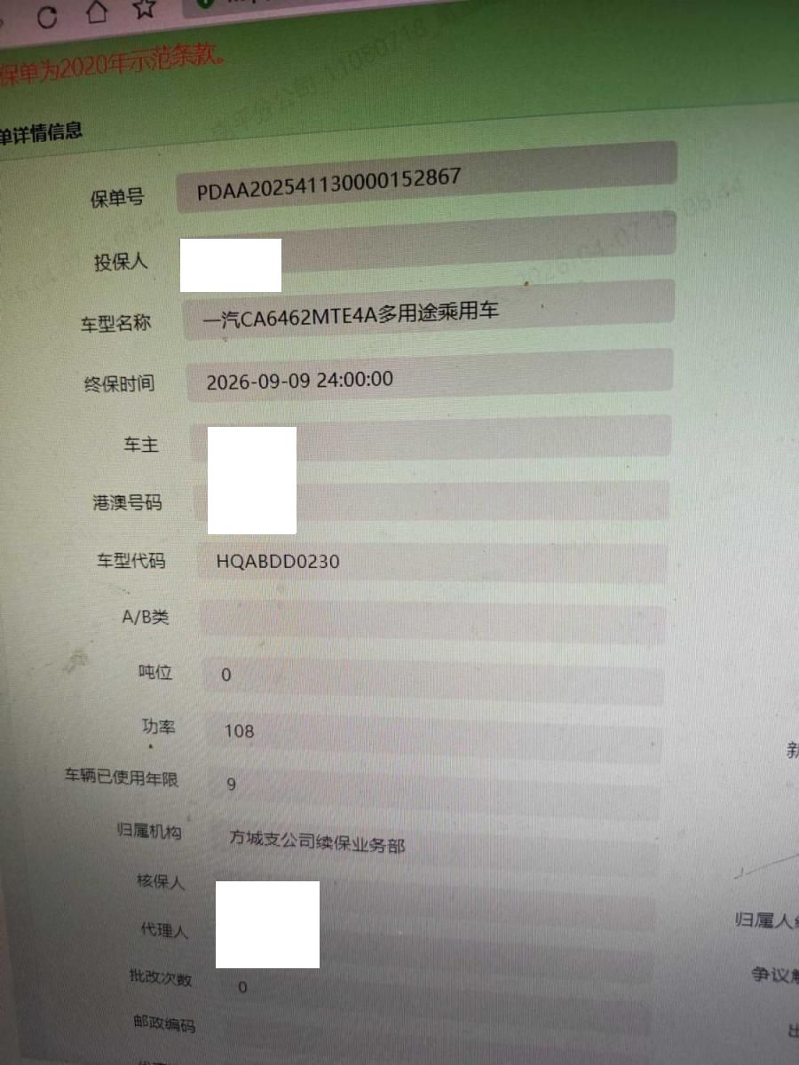 车架号是否受损 未知 使用性质 非营运