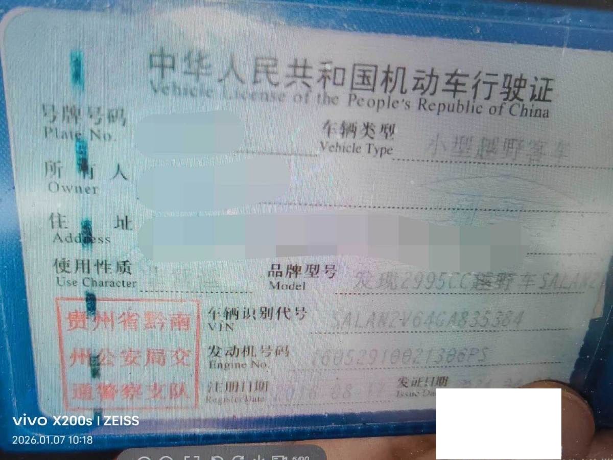 初次登记日期 2016-08-17 车辆名称 路虎 发现