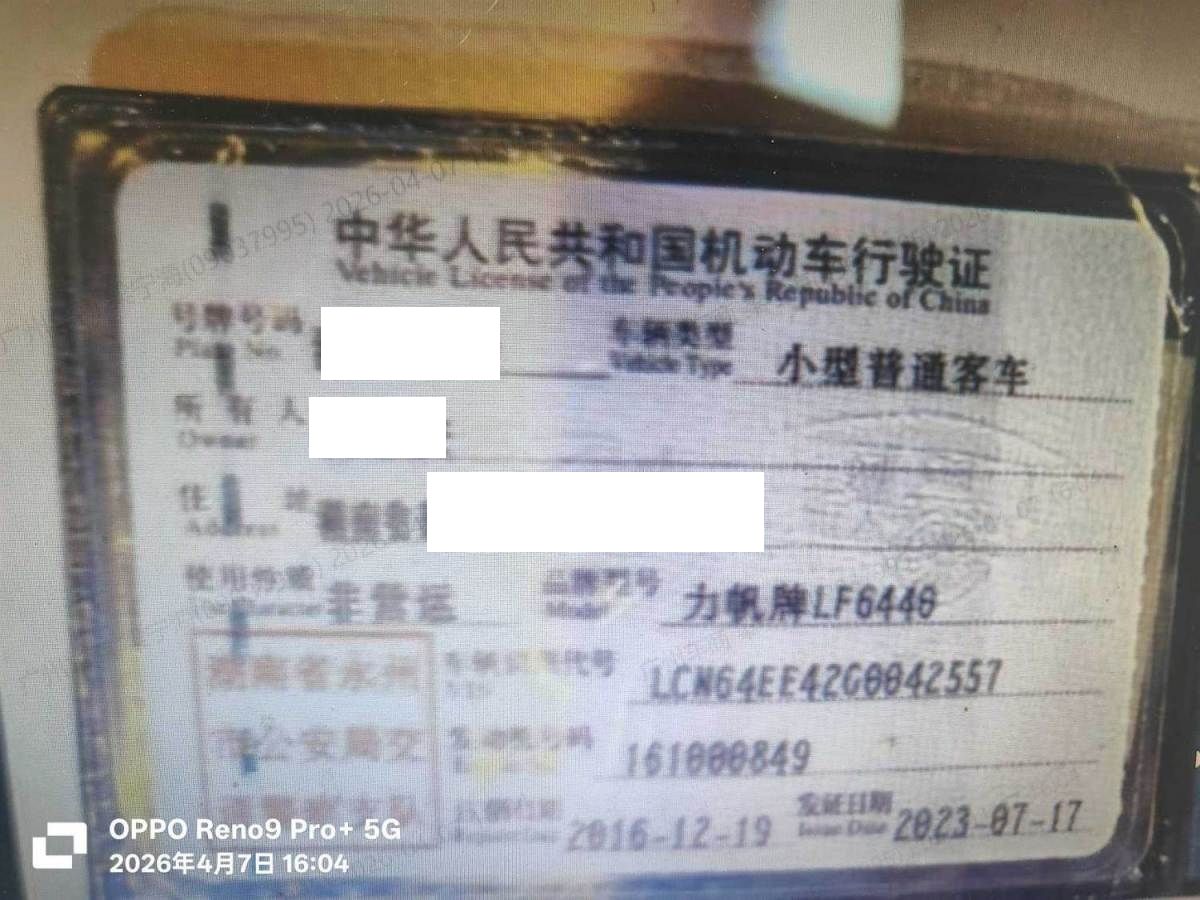 初次登记日期 2016-12-19 车辆名称 力帆汽车