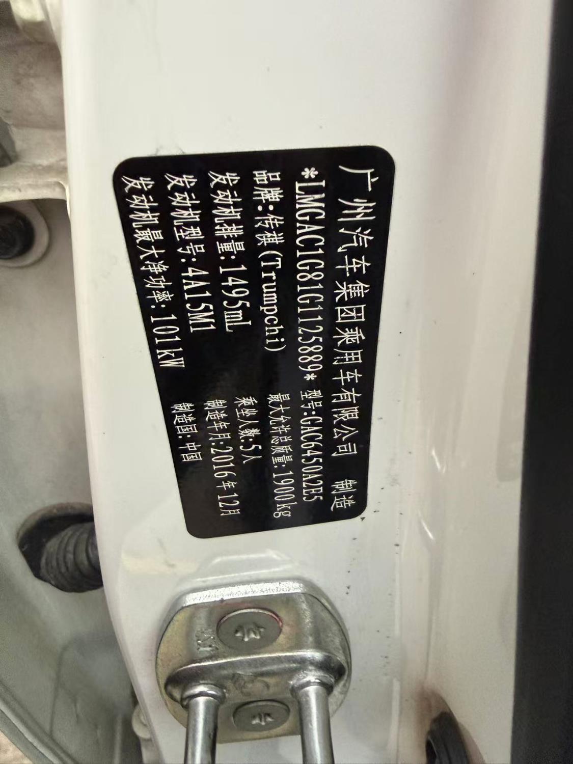 底盘号码 LMGAC1G81G1125889 变速箱类型 手自一体