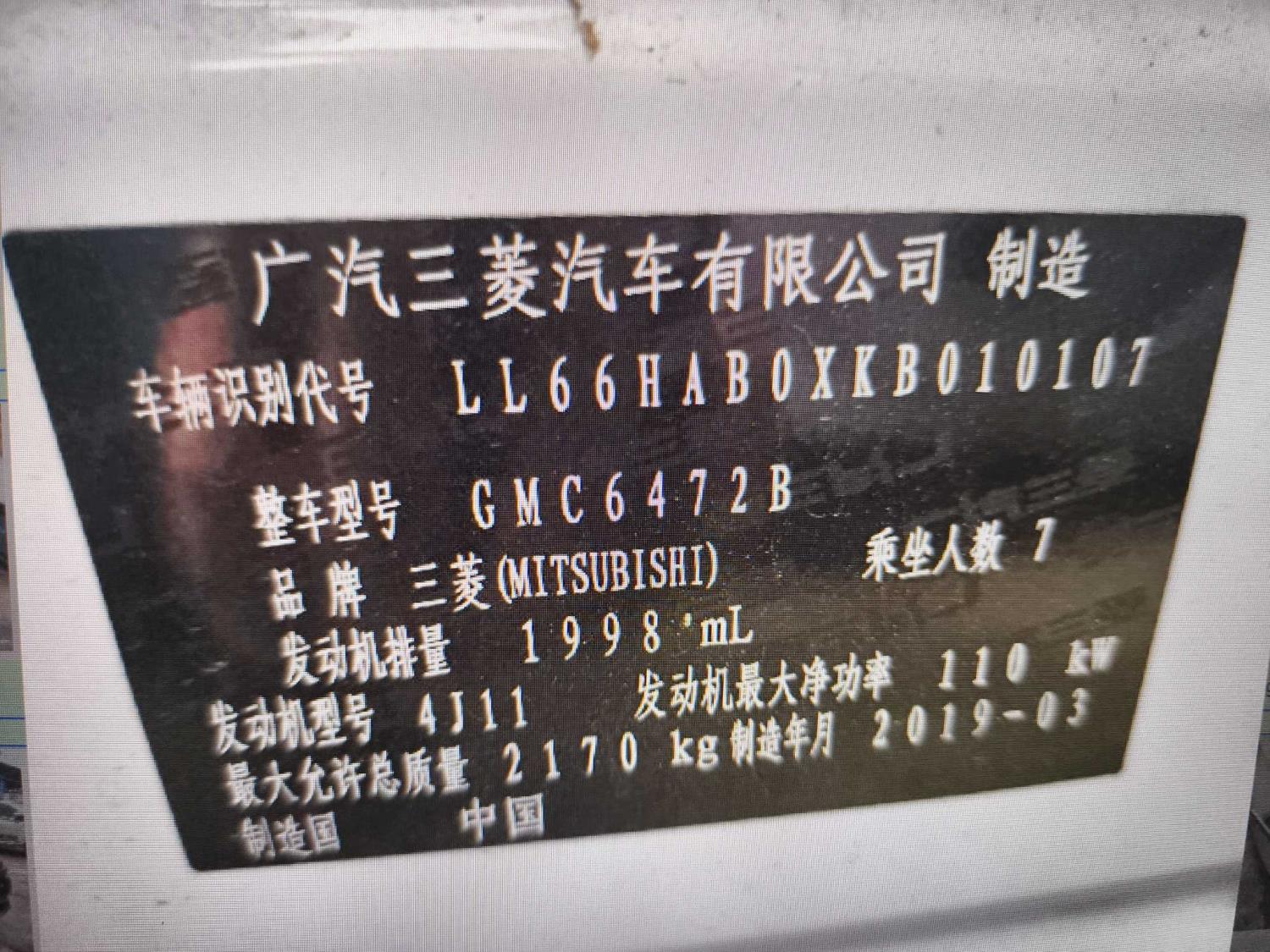初次登记日期 2019-06-26 车辆名称 三菱 欧蓝德