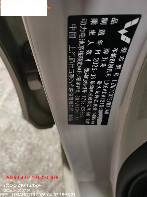 初次登记日期 2025-10-08 车辆名称 五菱汽车 五菱缤果