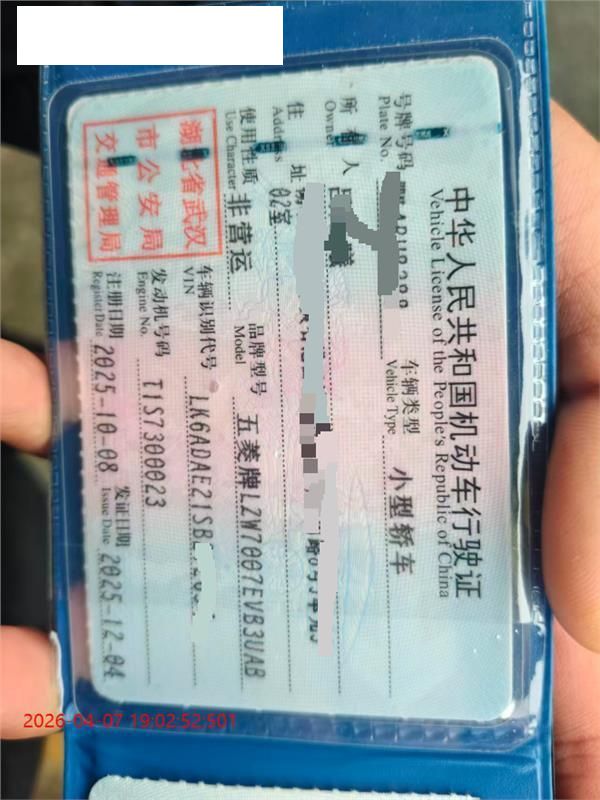 车牌号 鄂****** 品牌 五菱