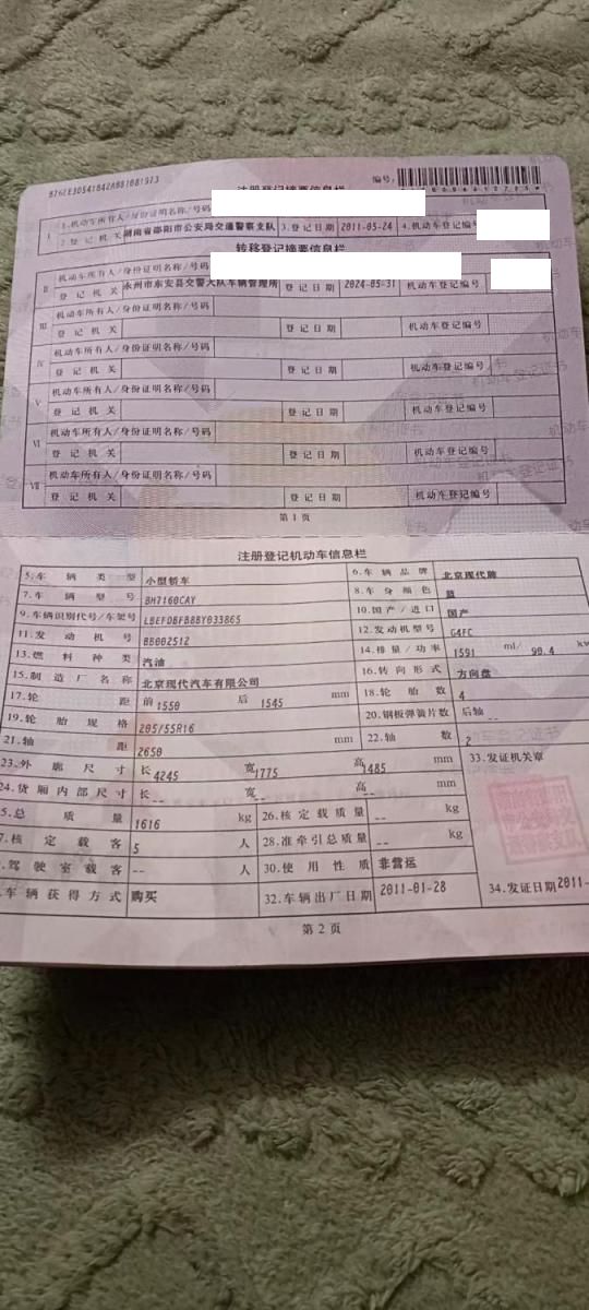 初次登记日期 2011-05-24 车辆名称 北京现代i30
