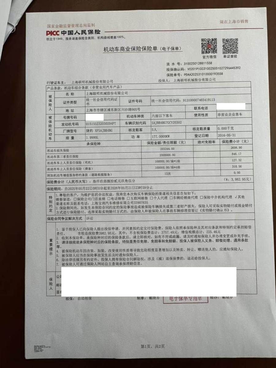 保险金额 ¥203344 预估维修金额