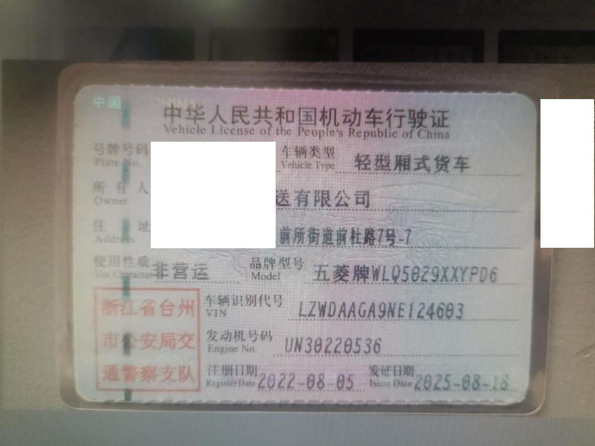 车牌号 浙****** 品牌 五菱