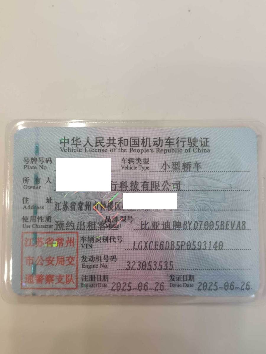 初次登记日期 2025-06-26 车辆名称 比亚迪 秦新能源