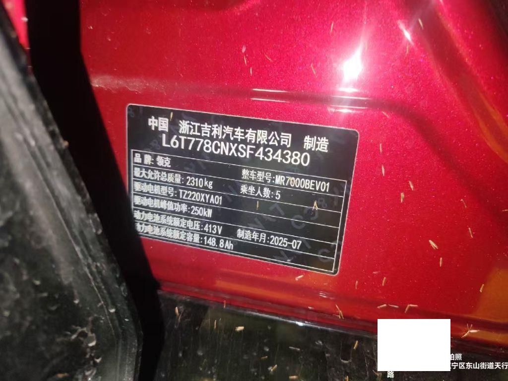 初次登记日期 2025-09-19 车辆名称 领克牌