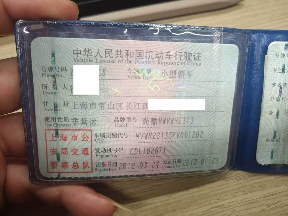 初次登记日期 2016-03-24 车辆名称 大众 尚酷