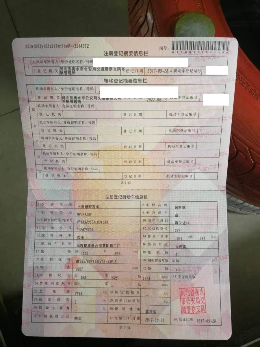 车牌号 冀****** 品牌 保时捷