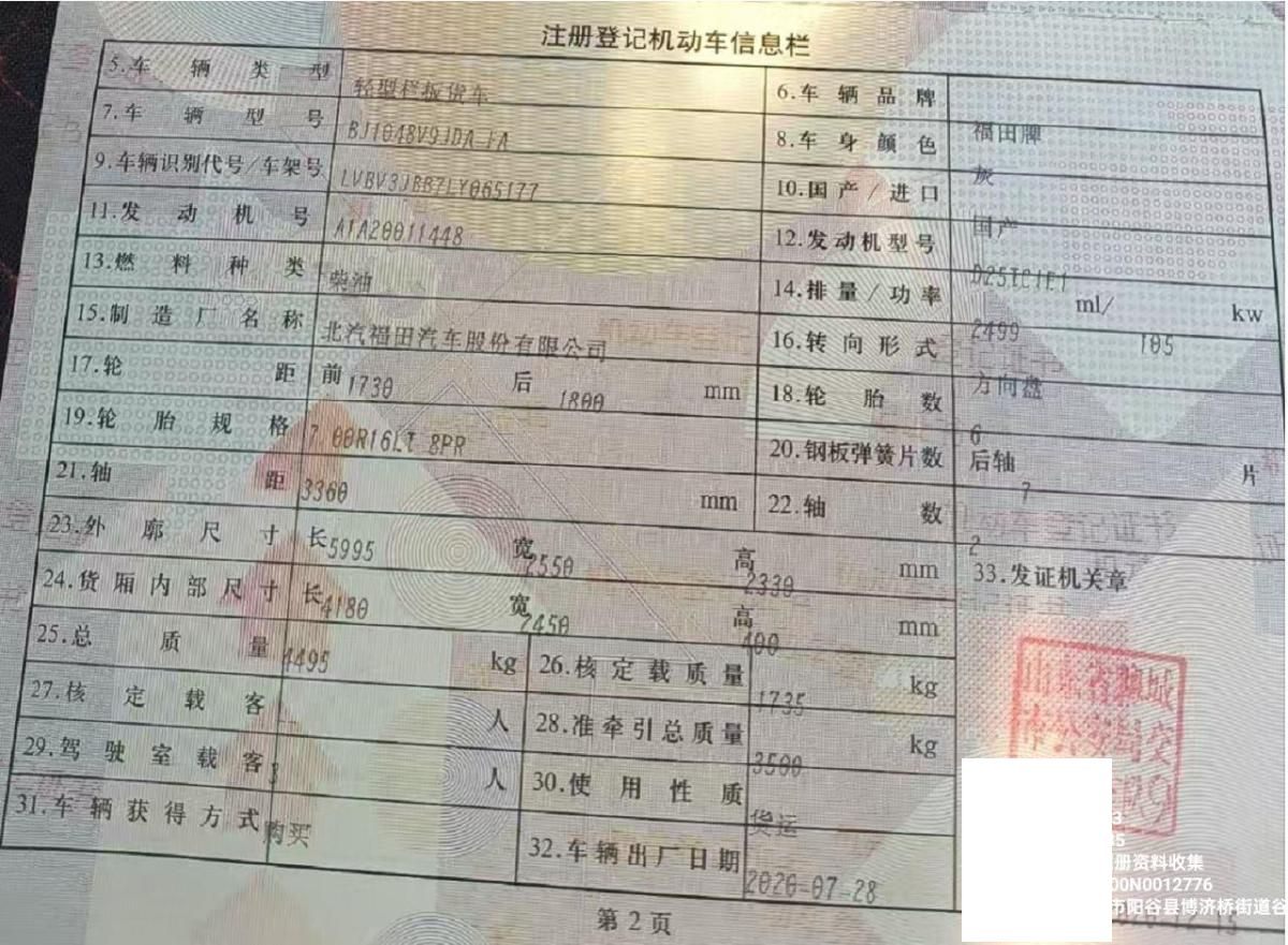 车牌号 鲁****** 品牌 福田