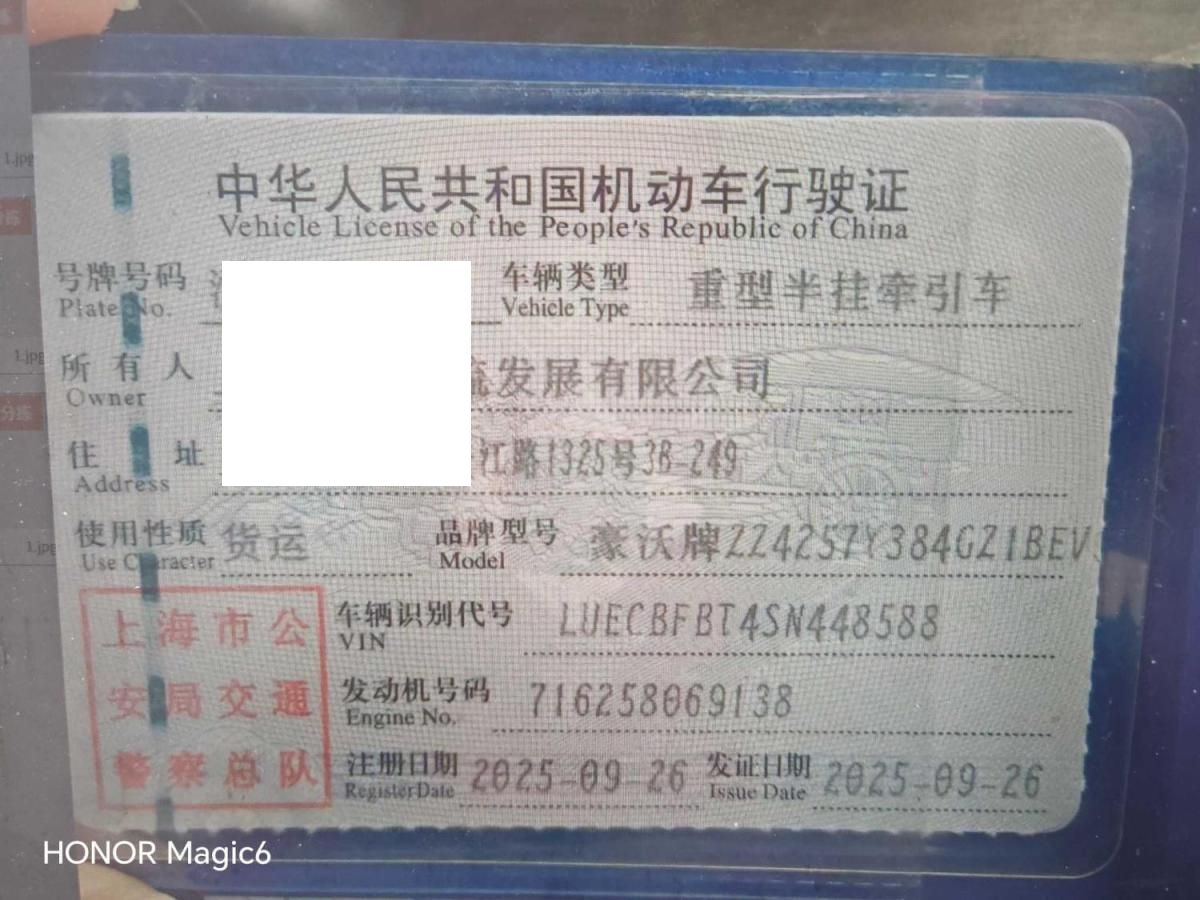 初次登记日期 2025-09-26 车辆名称 豪沃牌