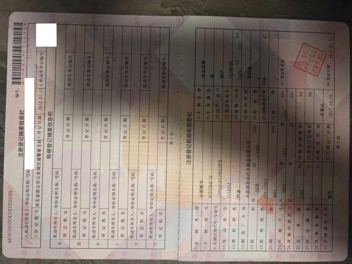 车架号是否受损 未知 使用性质 非营运