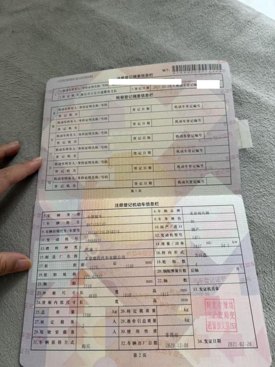 初次登记日期 2021-02-26 车辆名称 现代 伊兰特