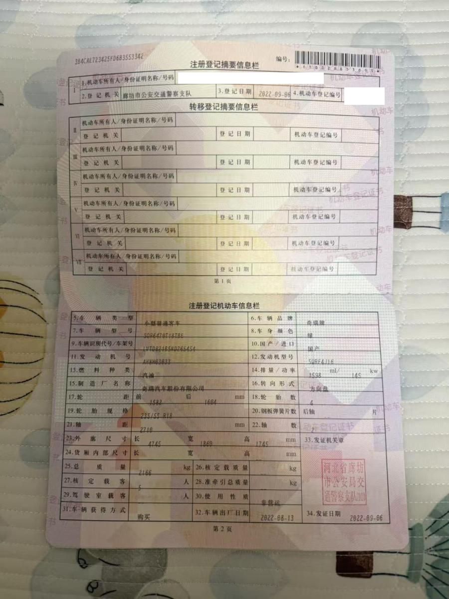 车牌号 冀****** 品牌 奇瑞