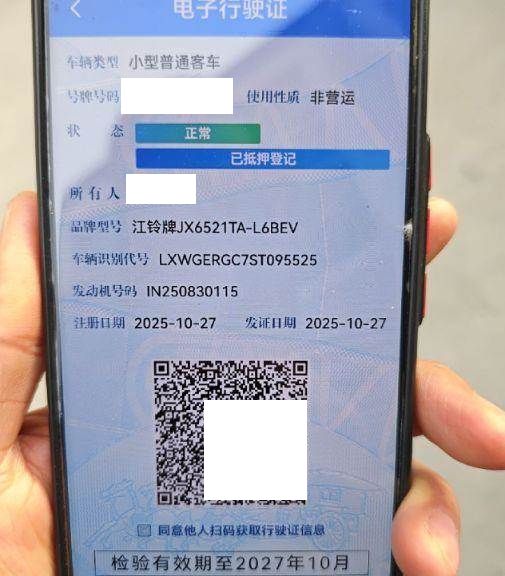 初次登记日期 2025-10-27 车辆名称 江铃 福顺