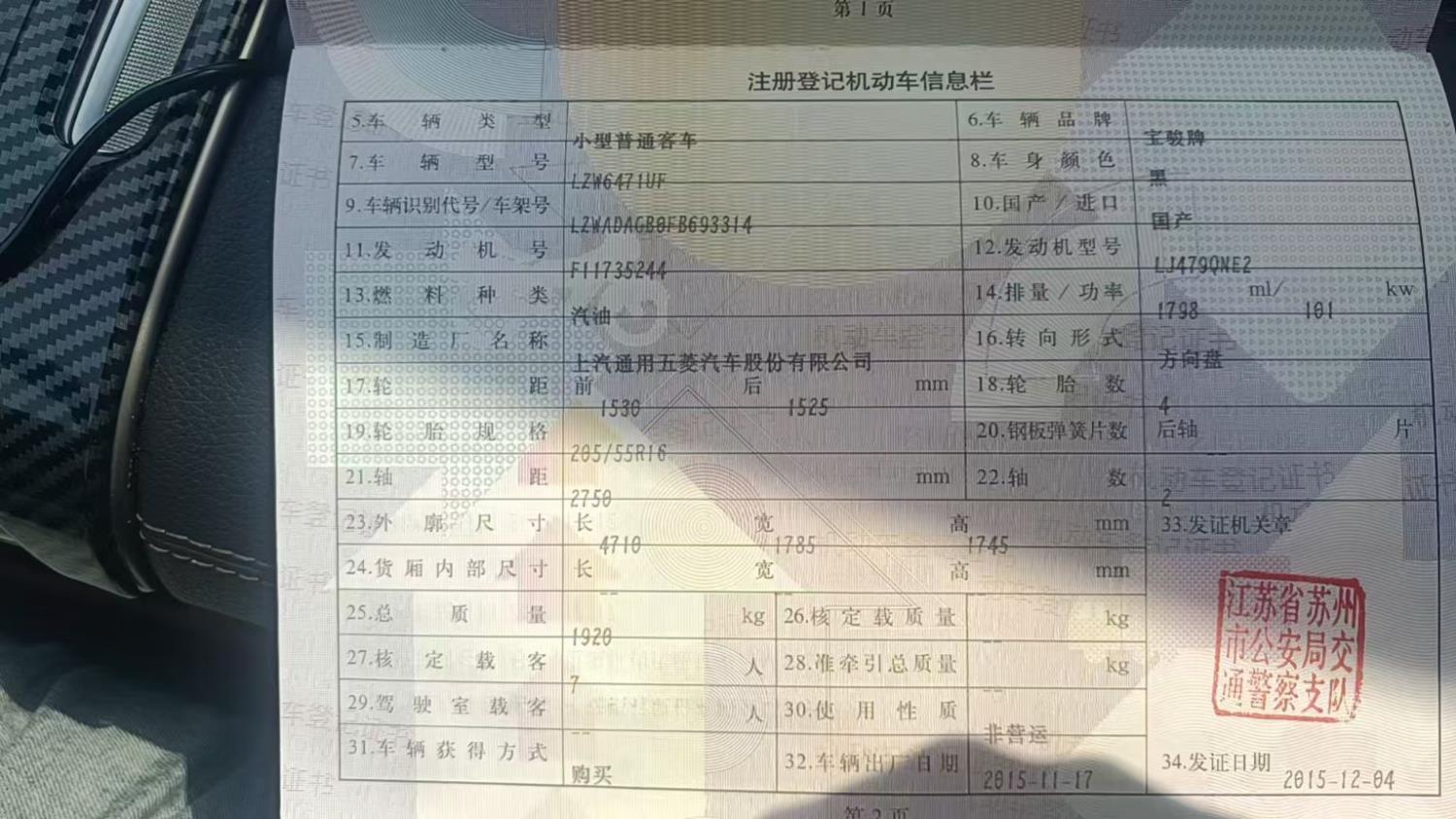 初次登记日期 2015-12-04 车辆名称 宝骏730