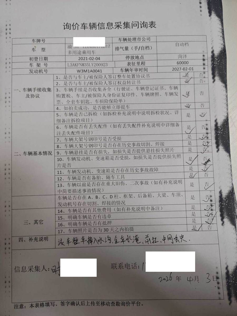 拍卖编号 N202604080653 事故类型 水淹加事故