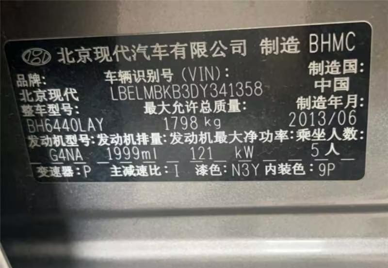 初次登记日期 2013-07-02 车辆名称 北京现代