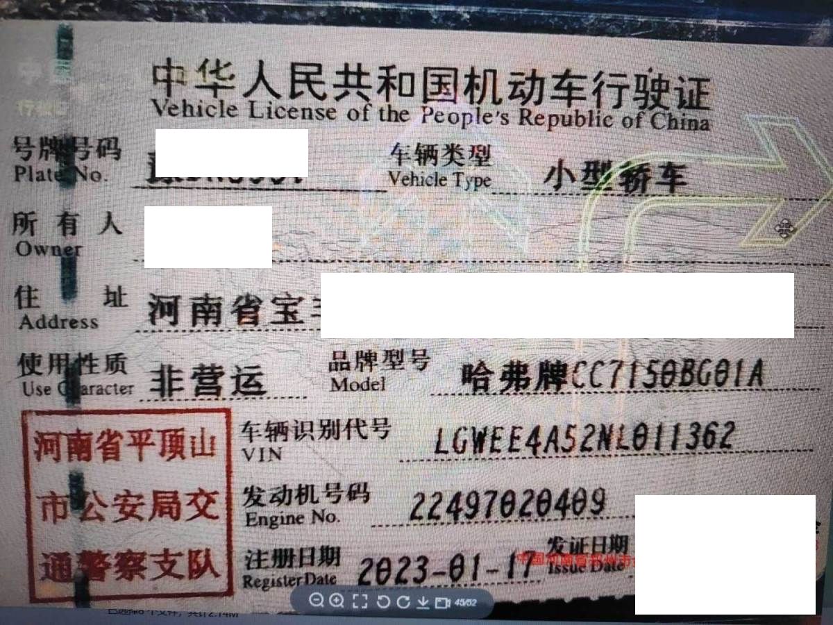 初次登记日期 2023-01-17 车辆名称 哈弗牌