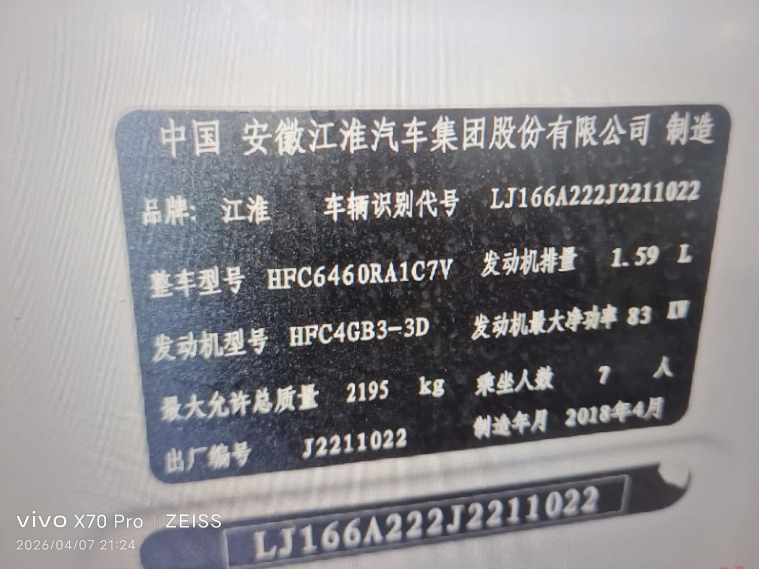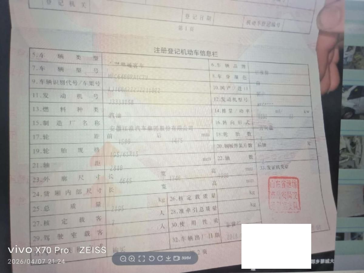 车牌号 鲁****** 品牌 江淮