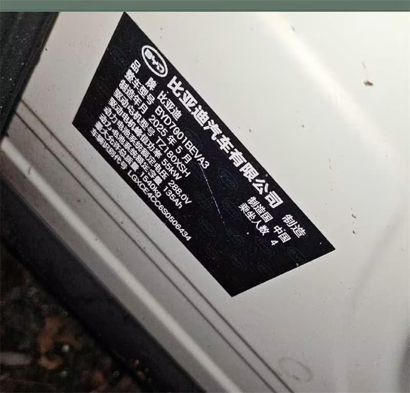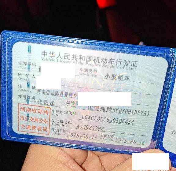 初次登记日期 2025-08-12 车辆名称 比亚迪