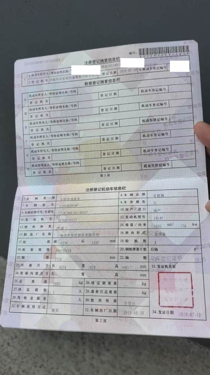 初次登记日期 2020-07-10 车辆名称 名爵牌