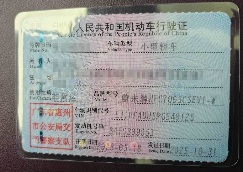 初次登记日期 2023-05-18 车辆名称 蔚来牌