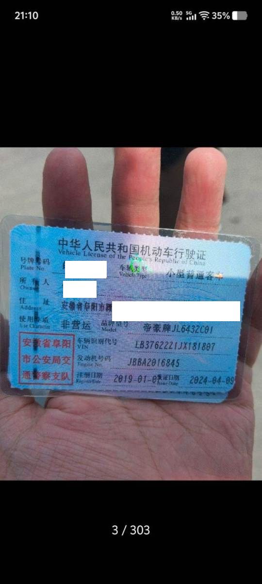 车牌号 皖****** 品牌 吉利