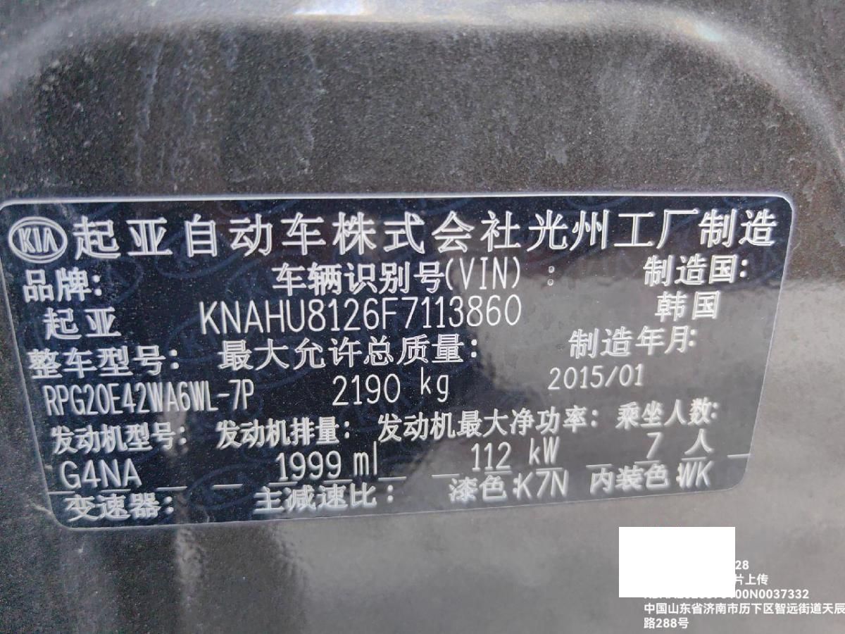 底盘号码 KNAHU8126F7113860 变速箱类型 手自一体