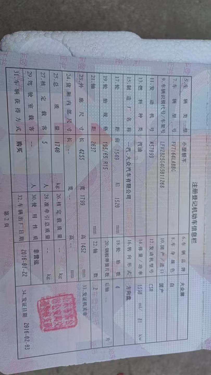 车牌号 鲁****** 品牌 大众