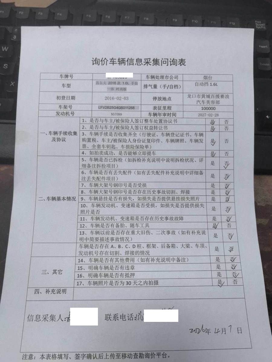 初次登记日期 2016-02-03 车辆名称 大众 高尔夫