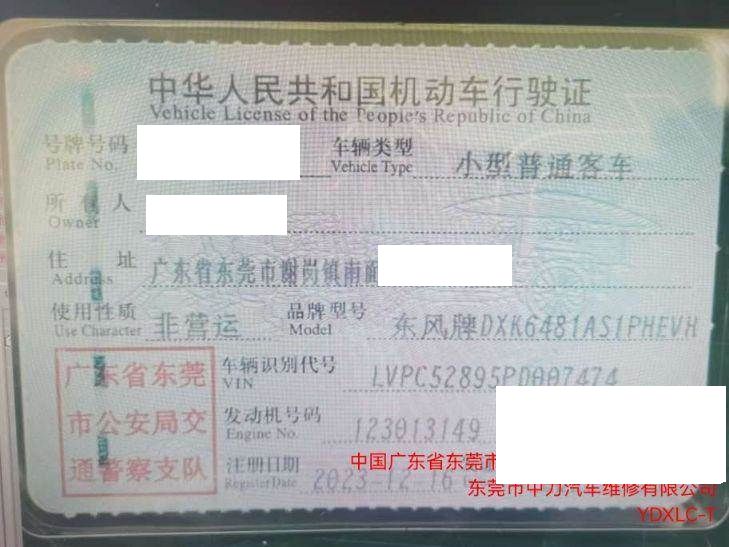 车辆归属地 广东省东莞市 车辆停放仓库 广东省东莞市东莞市