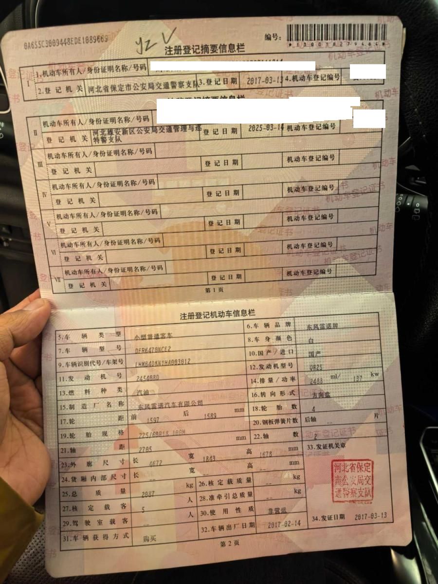 初次登记日期 2017-03-13 车辆名称 雷诺 科雷傲