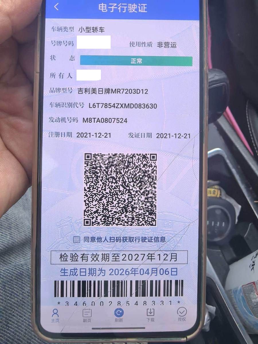 初次登记日期 2021-12-21 车辆名称 吉利汽车 星瑞