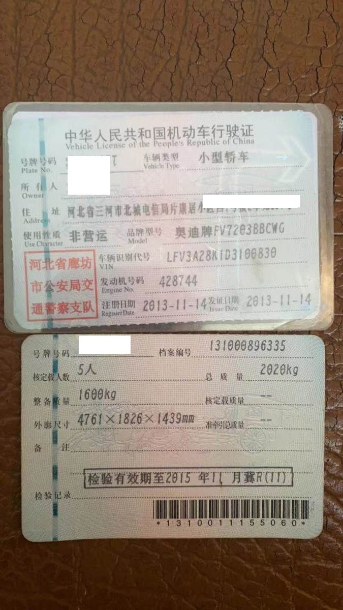 车牌号 冀****** 品牌 奥迪
