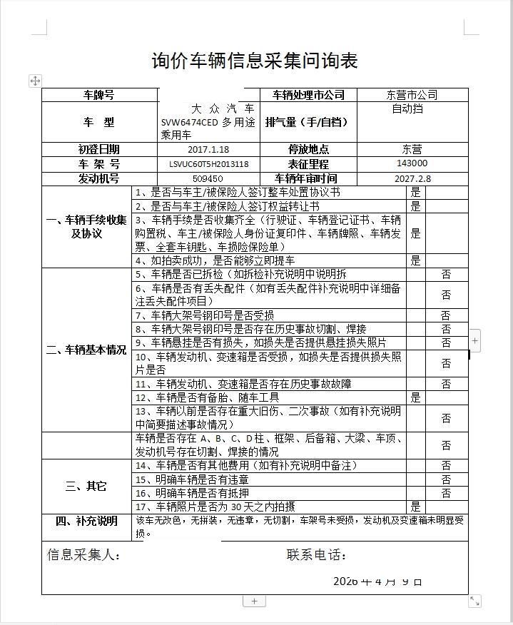 5年以上车辆报价后不得以二次事故为由提出议价或退车弃标。该车无改色,无拼装,无违章,无切割,车架号未受损,发动机及变速箱未明显受损。