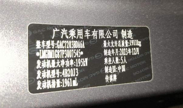初次登记日期 2024-02-27 车辆名称 广汽传祺 影豹