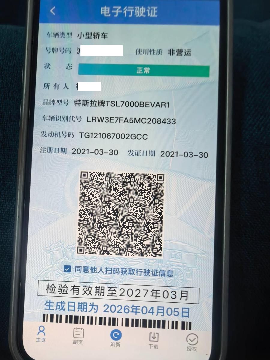 初次登记日期 2021-03-30 车辆名称 特斯拉 Model