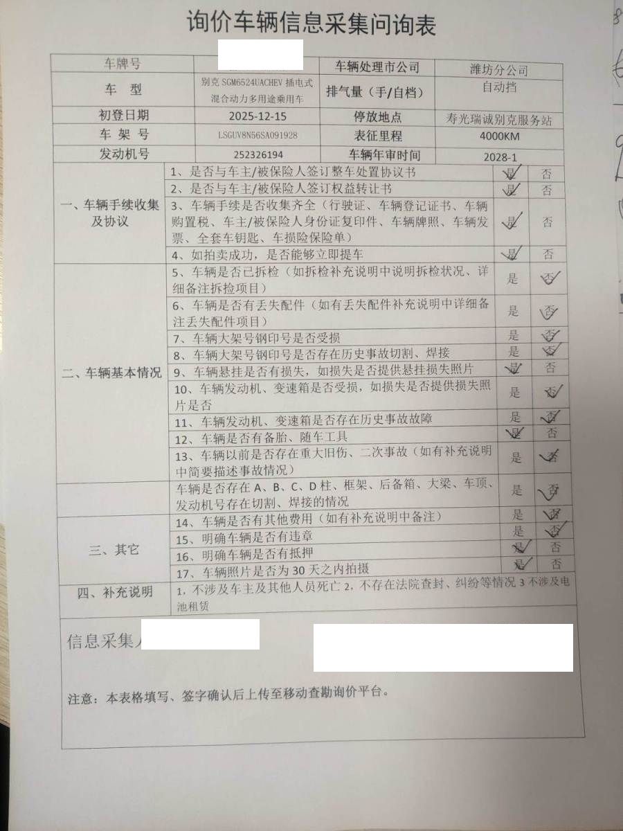 初次登记日期 2025-12-15 车辆名称 别克 新能源