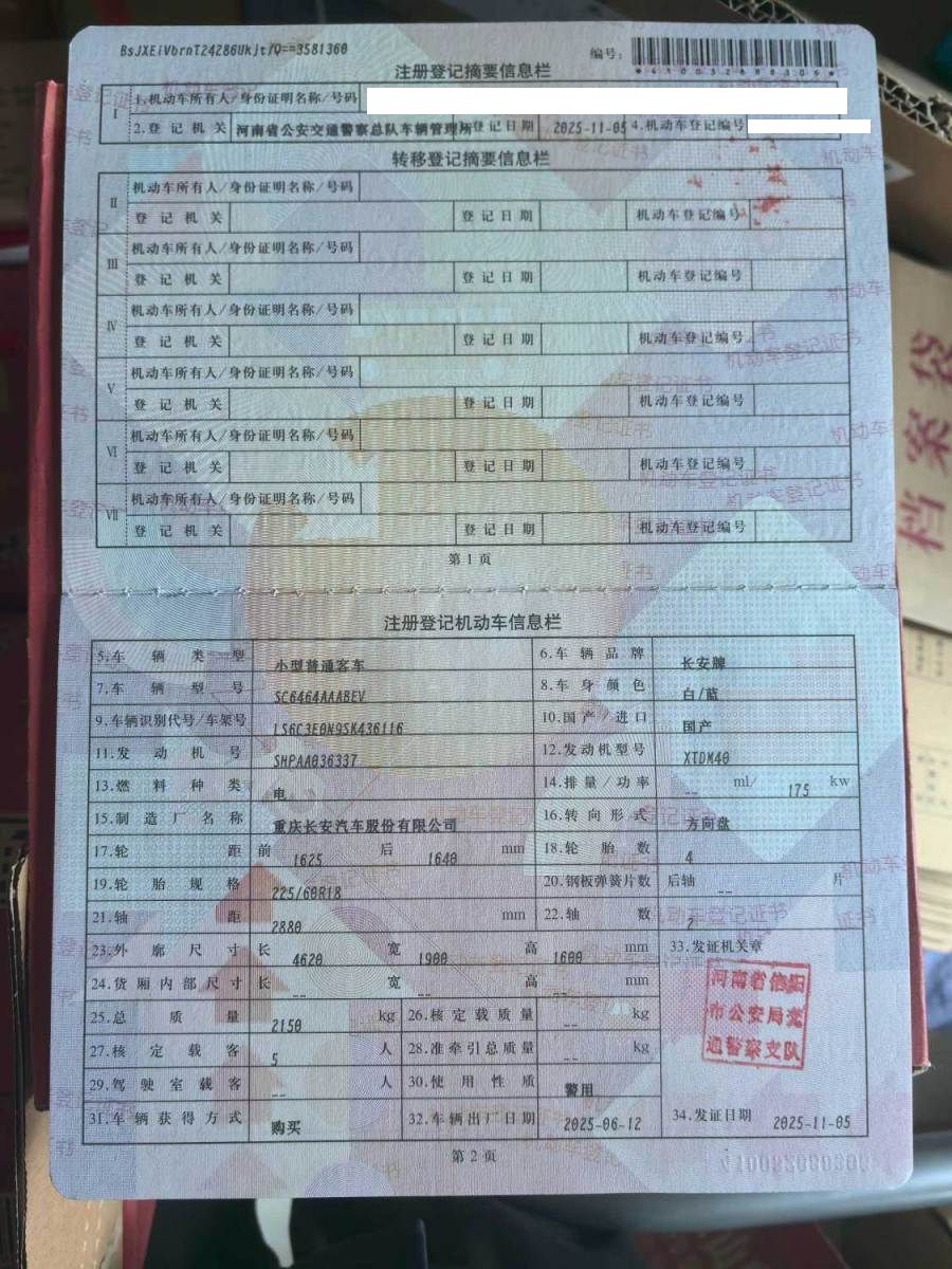 初次登记日期 2025-11-05 车辆名称 深蓝汽车