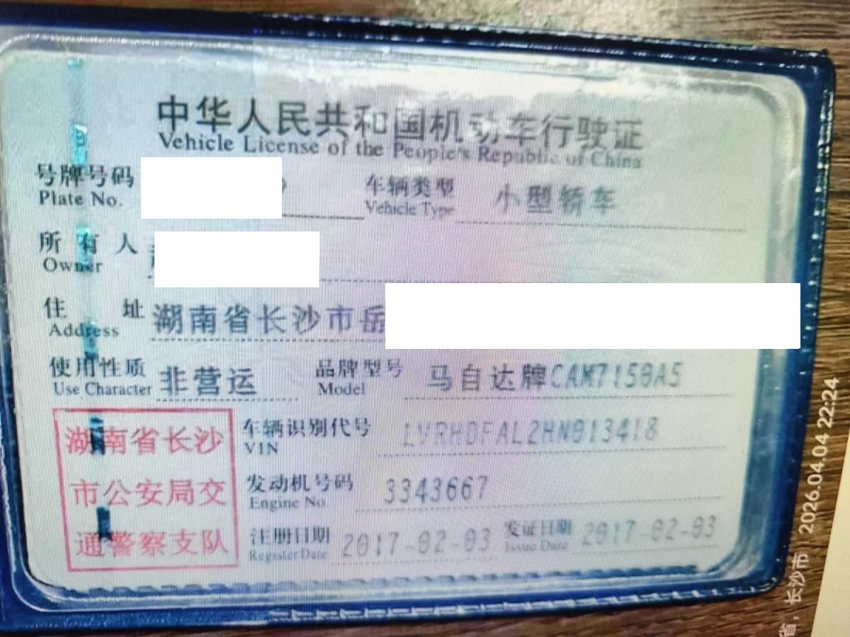 车牌号 湘****** 品牌 马自达