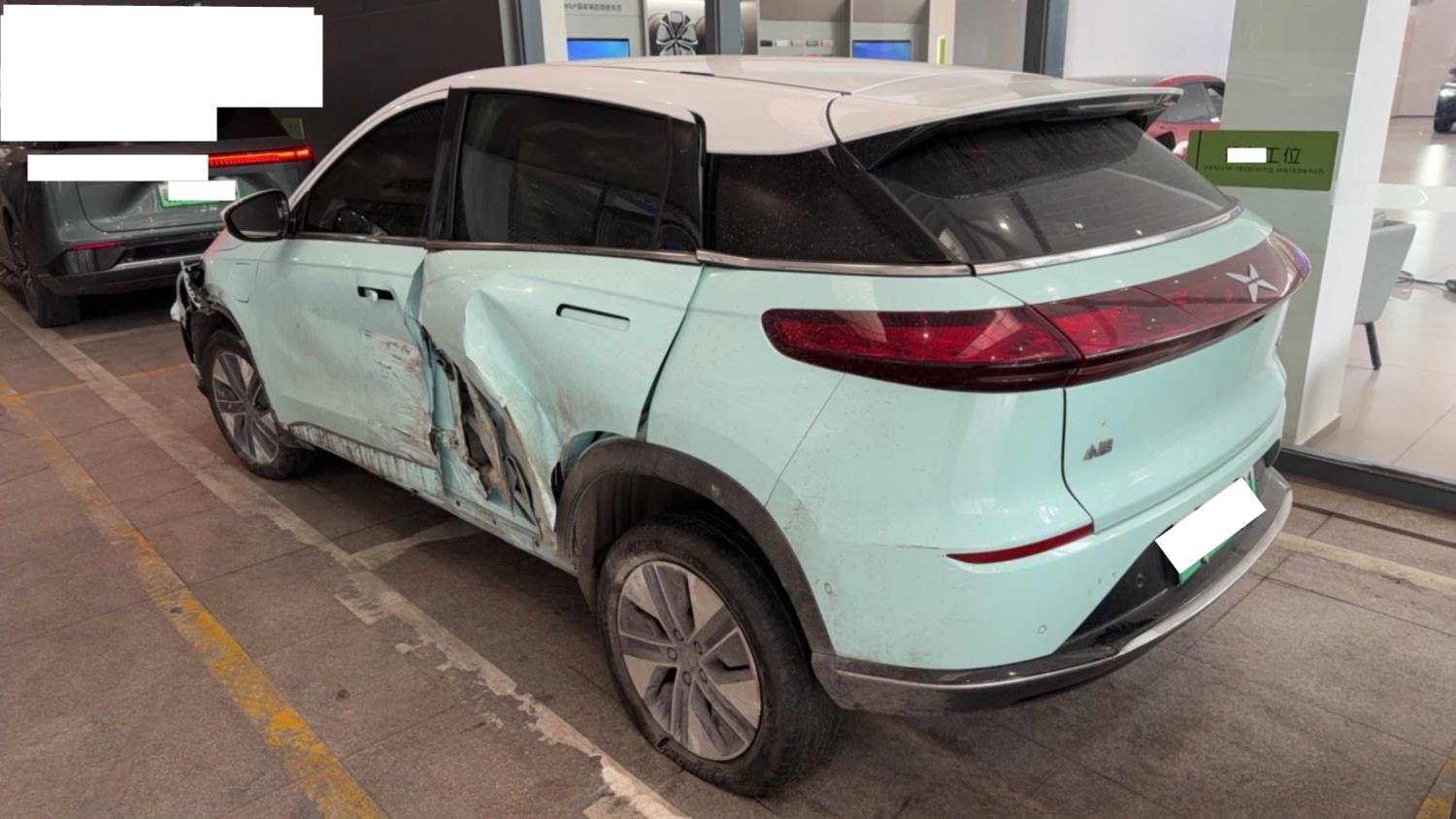 车身,底盘,气囊系统,动力电池等受损。过户费用由中标者承担