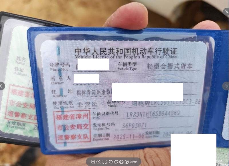 初次登记日期 2025-11-06 车辆名称 瑞驰牌