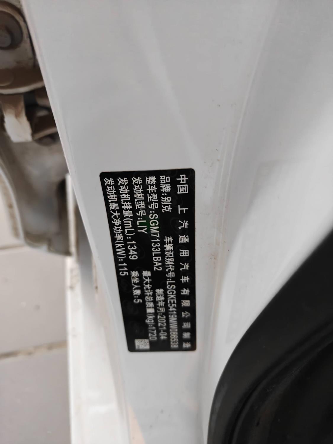 初次登记日期 2021-06-04 车辆名称 别克 英朗
