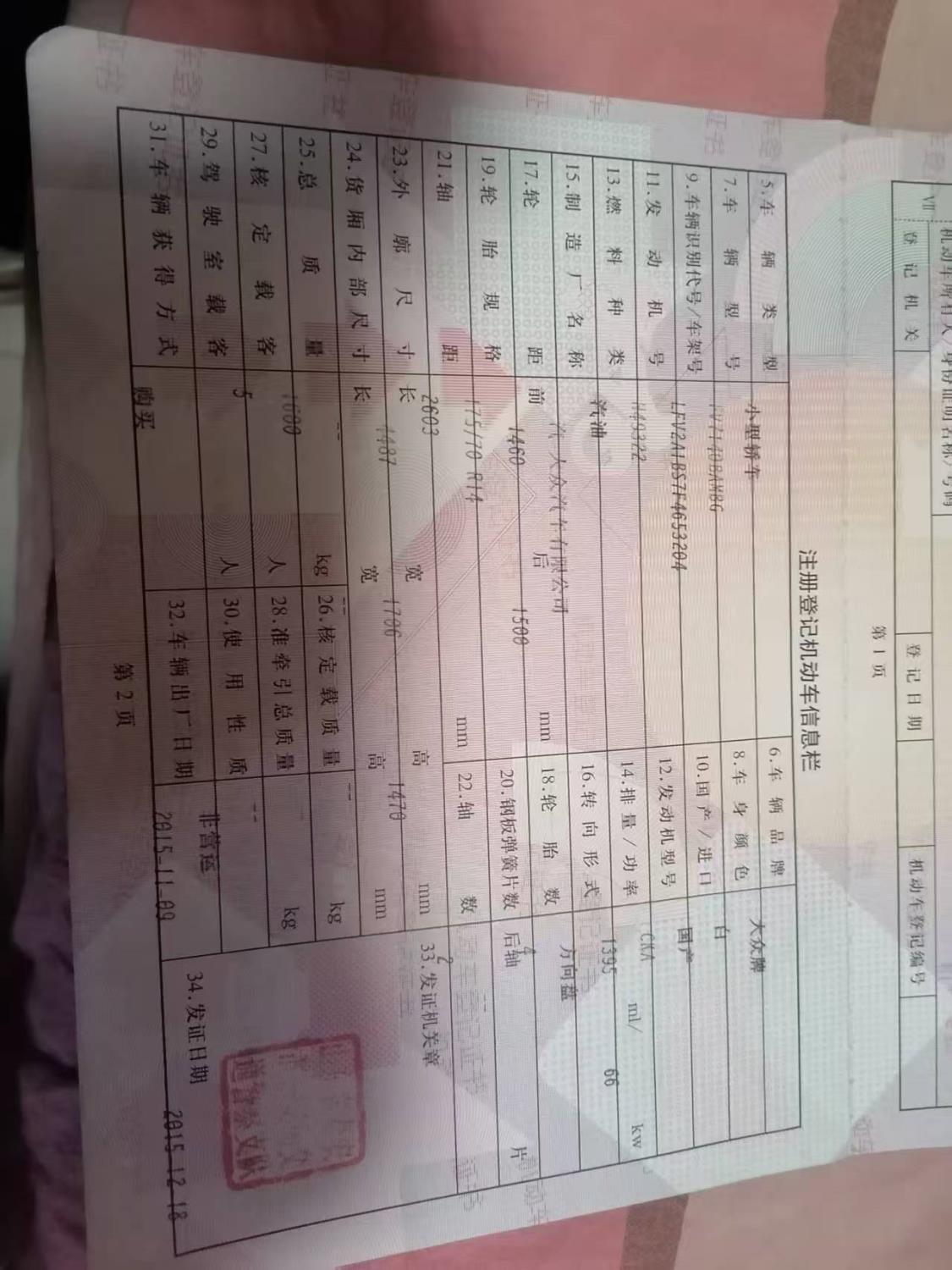 初次登记日期 2015-12-18 车辆名称 大众 捷达