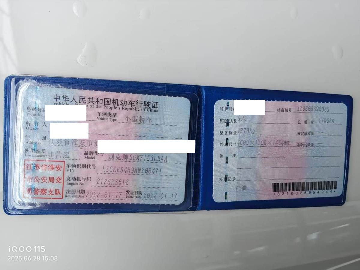 初次登记日期 2022-01-17 车辆名称 别克 英朗