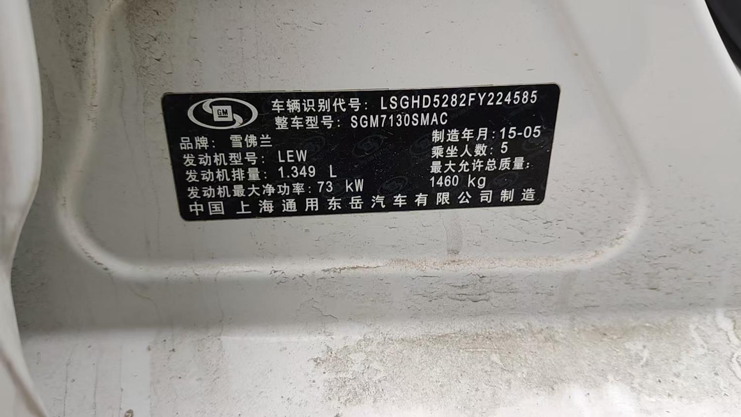 初次登记日期 2015-10-09 车辆名称 雪佛兰 赛欧